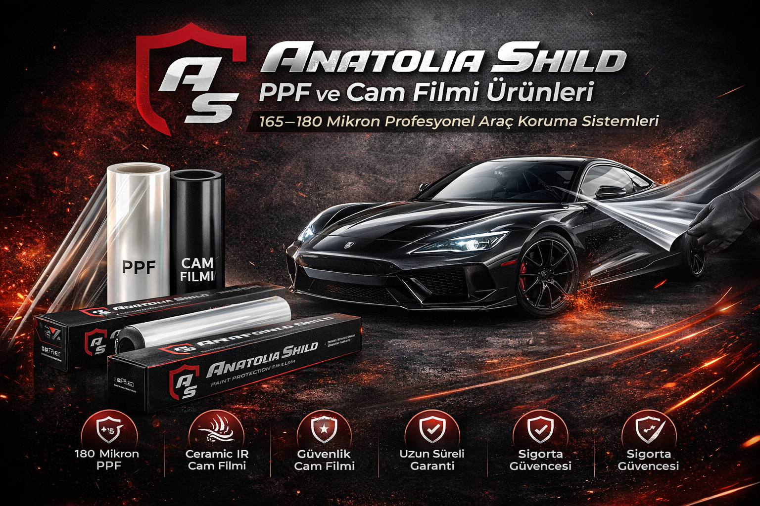 Anatolia Shild PPF ve Cam Filmi Ürünleri | 165–180 Mikron Profesyonel Araç Koruma Sistemleri